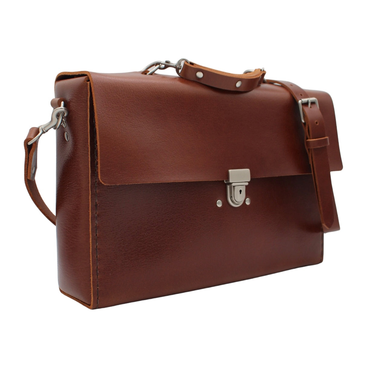 16x10x2.5 The Oxford briefcase / satchel is the newest addition to our popular and ever-growing slim satchel collection. A tuck lock on a flat lid with our new signature pivoting briefcase handle. Adjustable shoulder strap is included as always, and divider inserts would be a great choice. 1” adjustable shoulder strap included. Guaranteed for life.